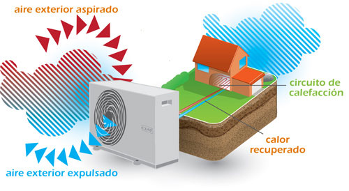 En lo básico, la aerotermia se asemeja a la geotermia, el sistema que aprovecha el calor del subsuelo para calentar la casa. Sin embargo, aquí no es necesario excavar nada. El mecanismo aprovecha las calorías que flotan en el aire, incluso en pleno invierno. De hecho, para que el aire no contuviera ningún tipo de calor, debería estar a una temperatura de cero absoluto, inferior los 200 grados centígrados bajo cero.